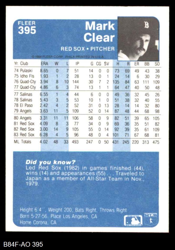 1984 Fleer #395 Mark Clear