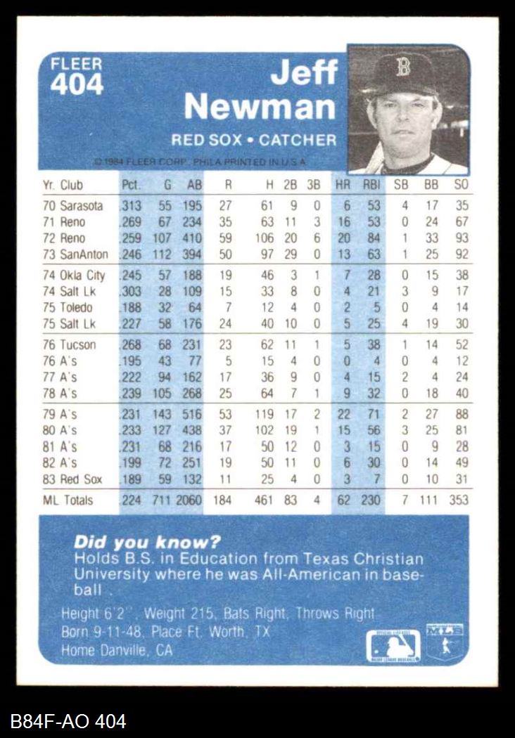 1984 Fleer #404 Jeff Newman