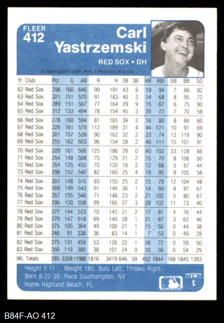 1984 Fleer Baseball Cards (1,895 available)1984 Fleer Red Sox (61 available)