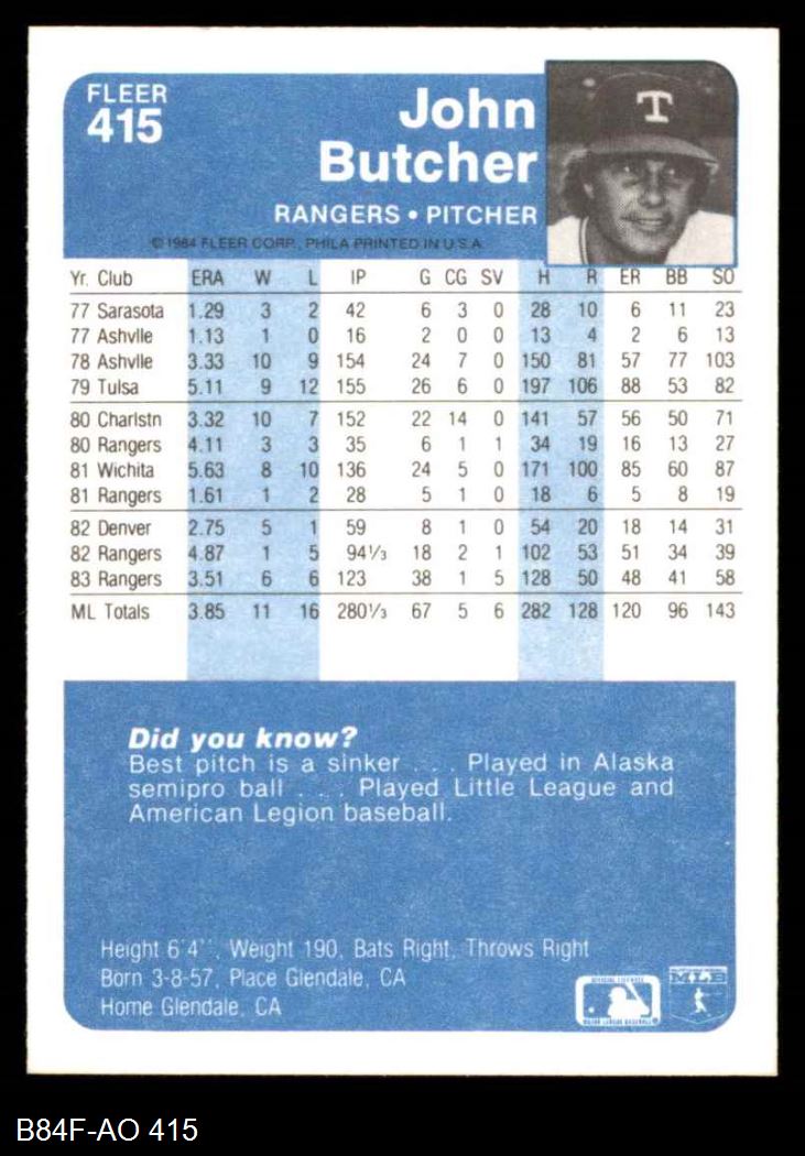 1984 Fleer #415 John Butcher 8 - NM/MT