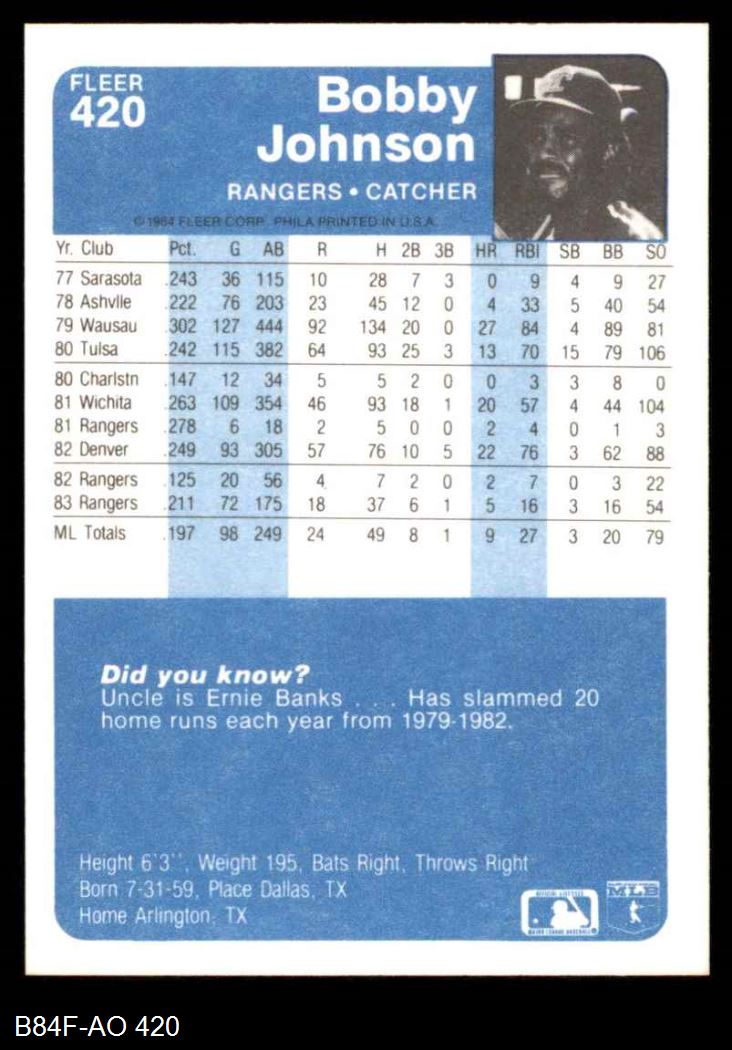 1984 Fleer Baseball Cards (1,882 available)1984 Fleer Rangers (73 available)