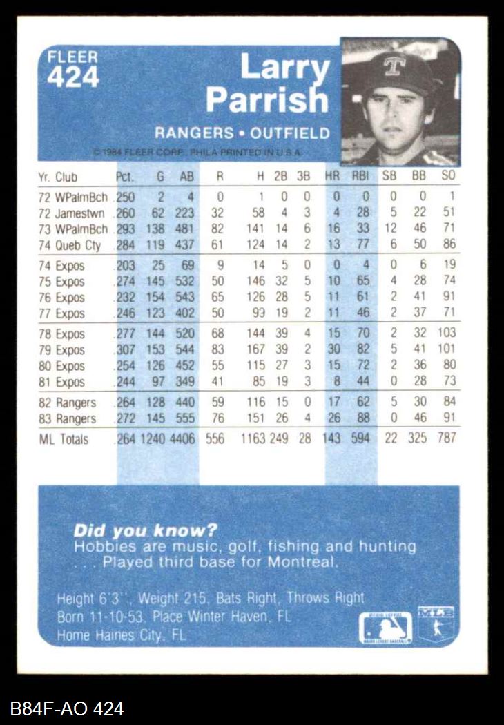1984 Fleer #424 Larry Parrish 8 - NM/MT