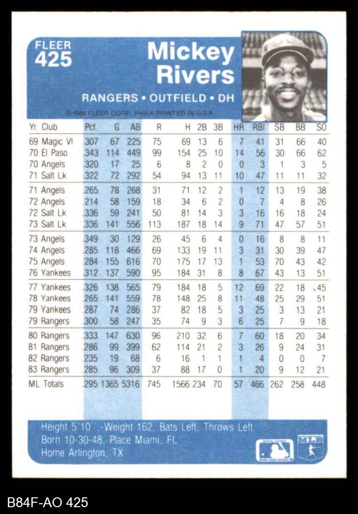 1984 Fleer Baseball Cards (1,885 available)1984 Fleer Rangers (73 available)