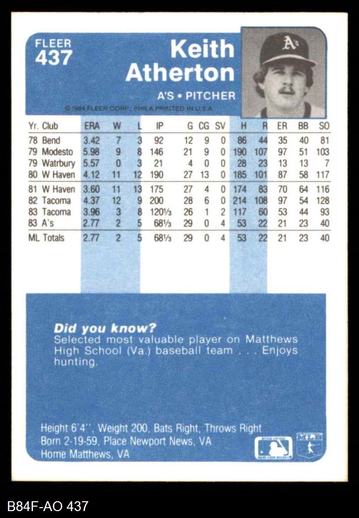 1984 Fleer Baseball Cards (1,885 available)1984 Fleer Athletics (82 available)
