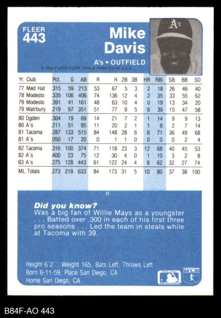 1984 Fleer #443 Mike Davis