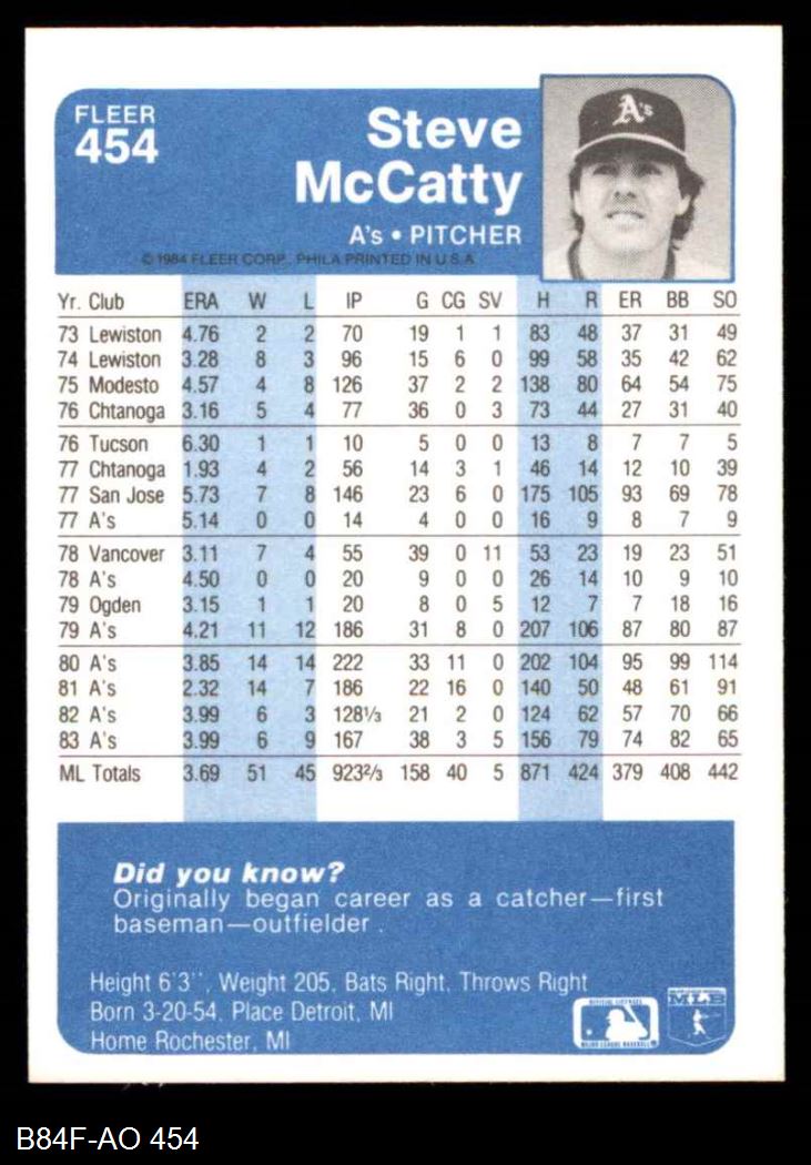1984 Fleer Baseball Cards (1,882 available)1984 Fleer Athletics (80 available)