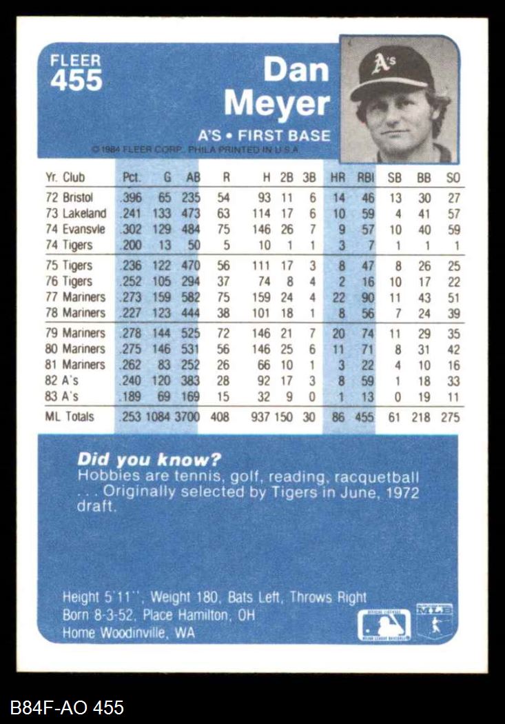 1984 Fleer Baseball Cards (1,882 available)1984 Fleer Athletics (82 available)