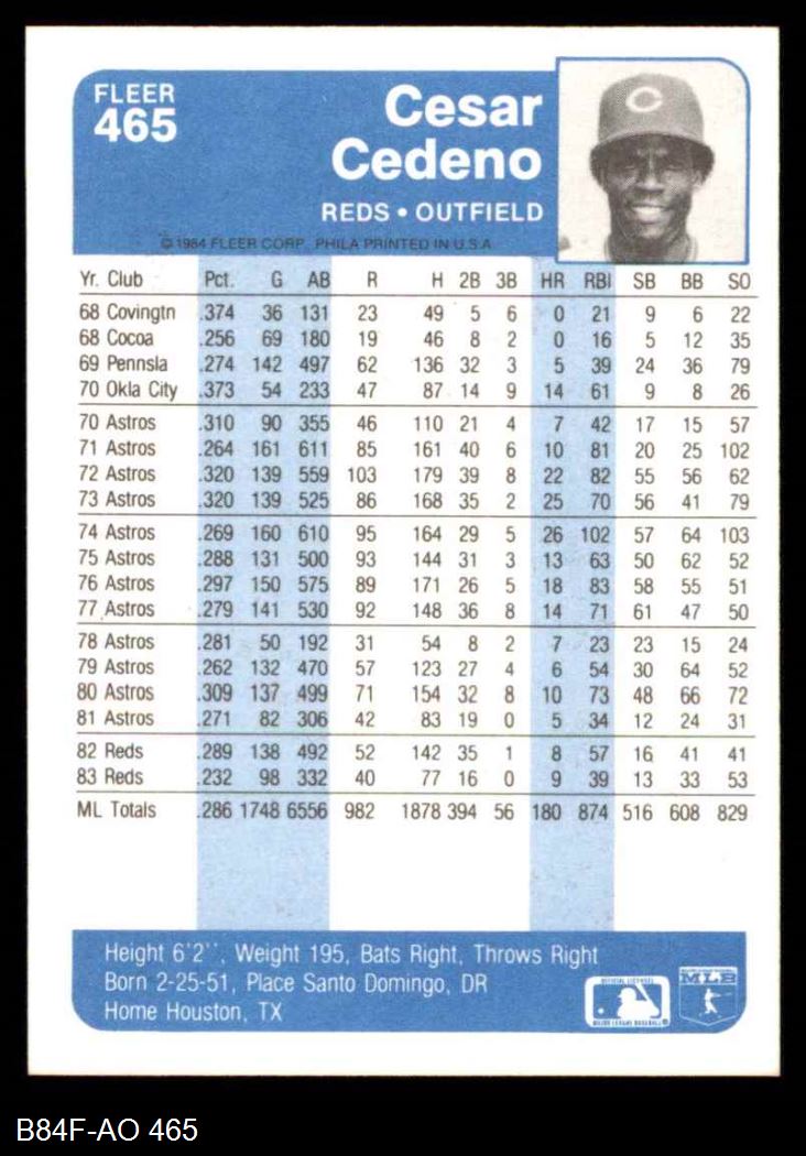 1984 Fleer #465 Cesar Cedeno 8 - NM/MT