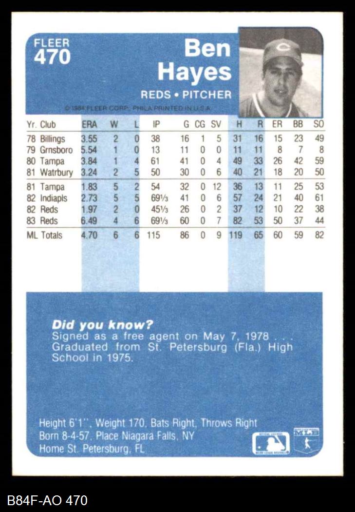 1984 Fleer #470 Ben Hayes 8 - NM/MT