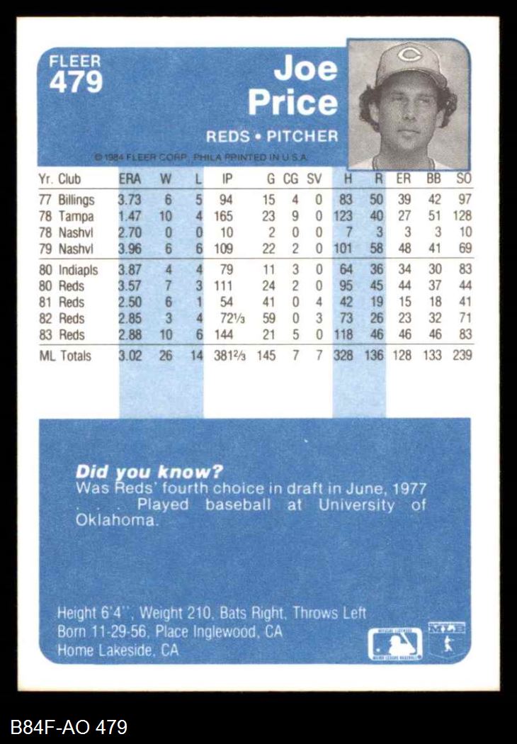1984 Fleer #479 Joe Price