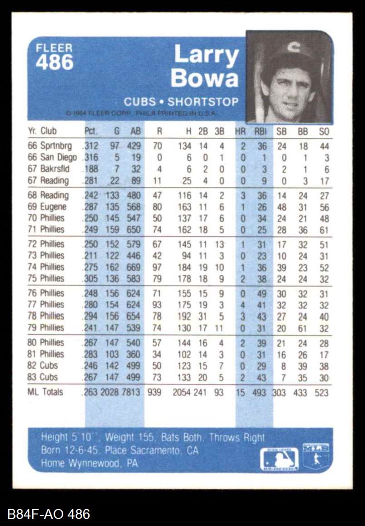 1984 Fleer #486 Larry Bowa 8 - NM/MT