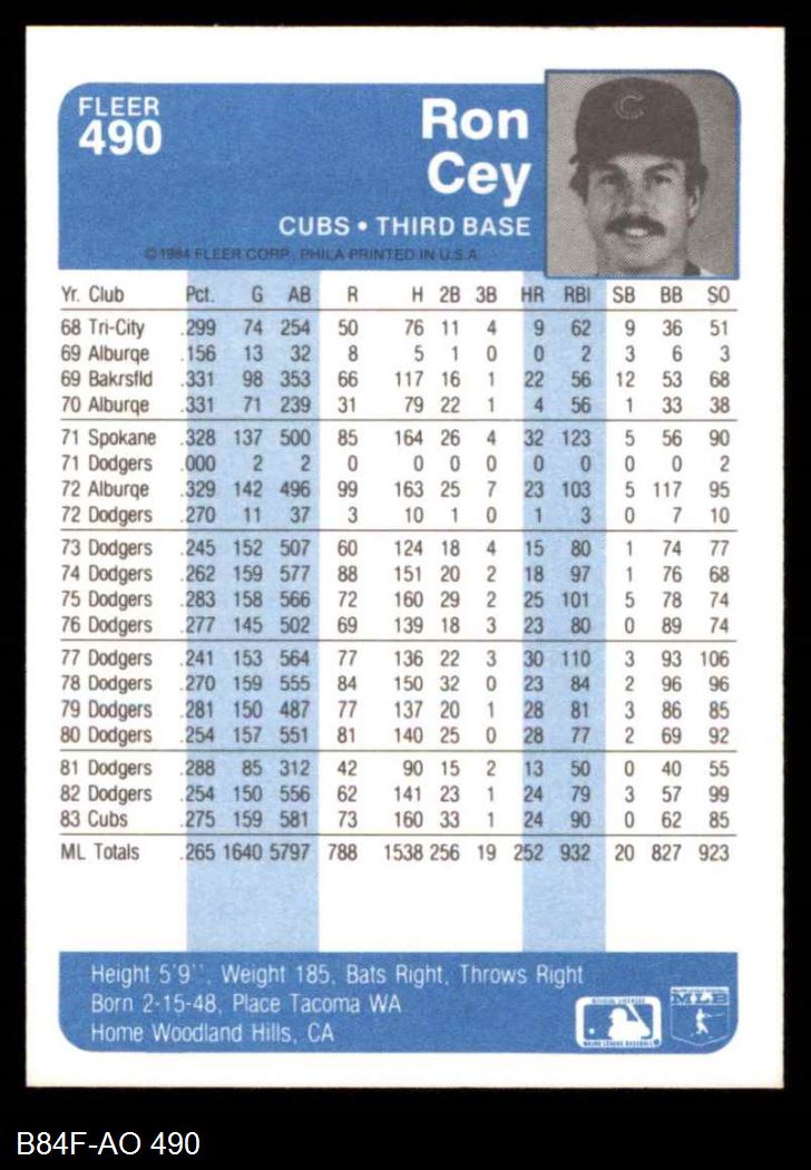 1984 Fleer #490 Ron Cey 8 - NM/MT