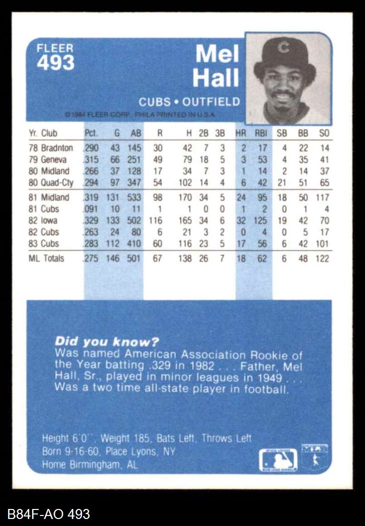 1984 Fleer #493 Mel Hall 8 - NM/MT