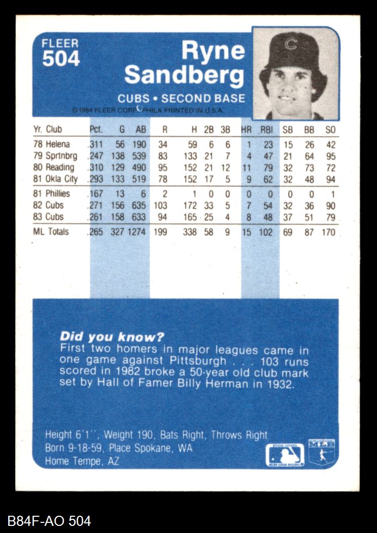 1984 Fleer Baseball Cards (1,885 available)1984 Fleer Cubs (51 available)