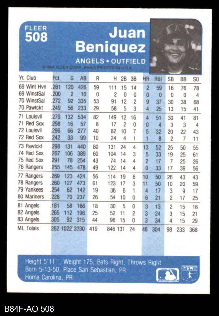 1984 Fleer #508 Juan Beniquez 8 - NM/MT