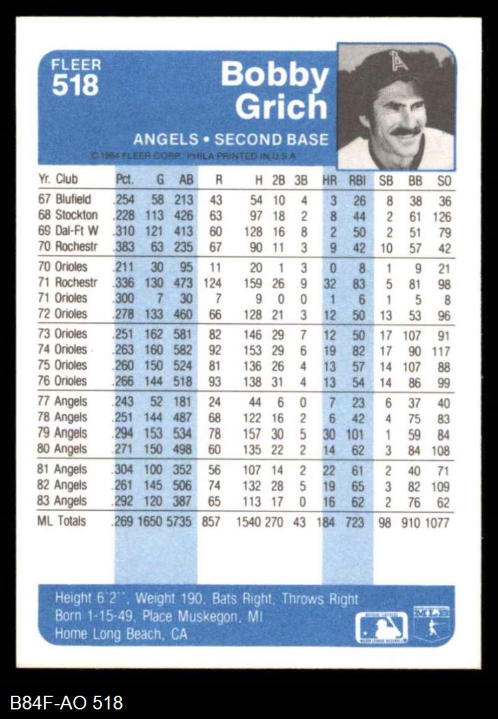1984 Fleer Baseball Cards (1,885 available)1984 Fleer Angels (94 available)