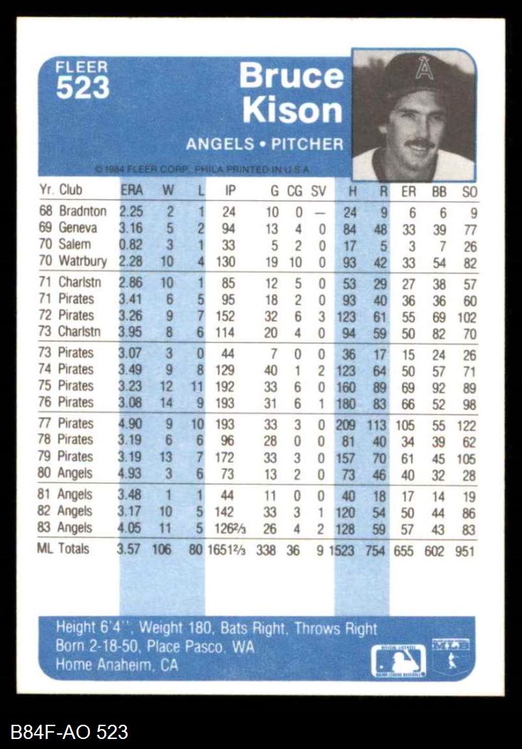 1984 Fleer #523 Bruce Kison 8 - NM/MT