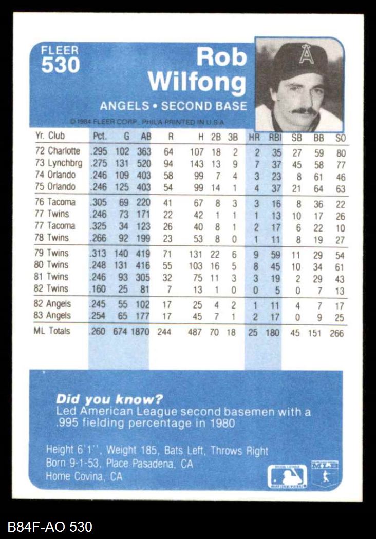 1984 Fleer #530 Rob Wilfong 8 - NM/MT