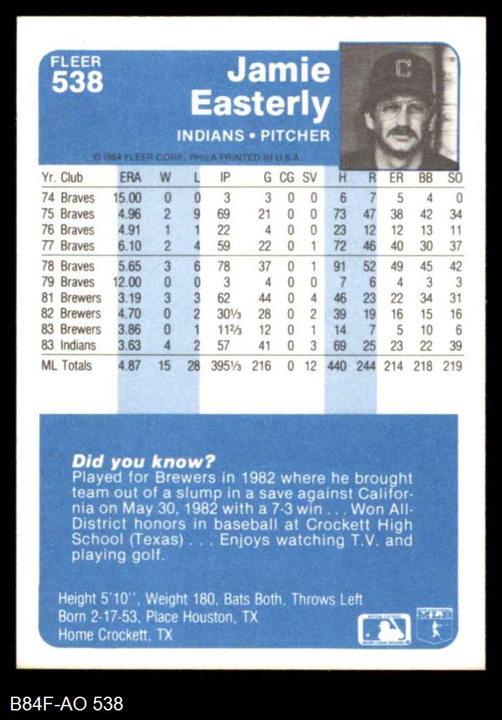 1984 Fleer #538 Jamie Easterly 8 - NM/MT