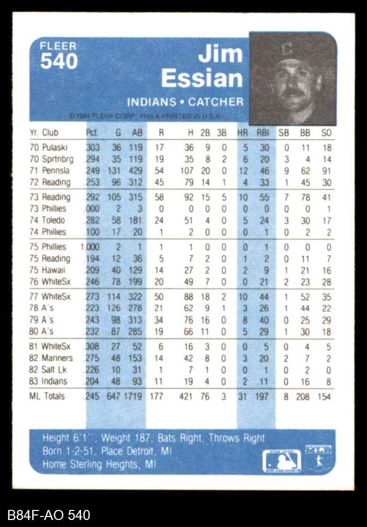 1984 Fleer #540 Jim Essian 8 - NM/MT