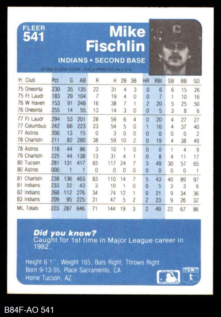 1984 Fleer #541 Mike Fischlin