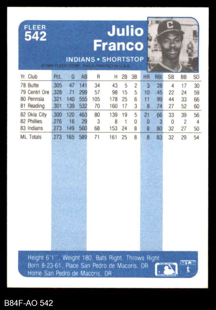 1984 Fleer Baseball Cards (1,885 available)1984 Fleer Indians (95 available)