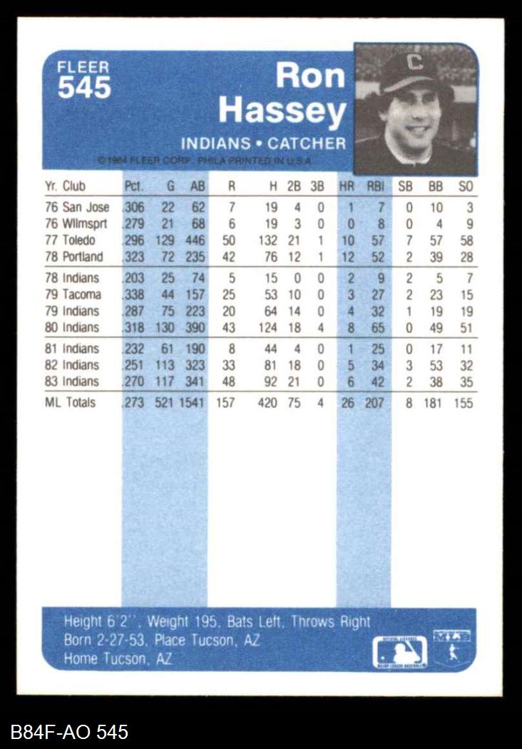 1984 Fleer Baseball Cards (1,885 available)1984 Fleer Indians (95 available)
