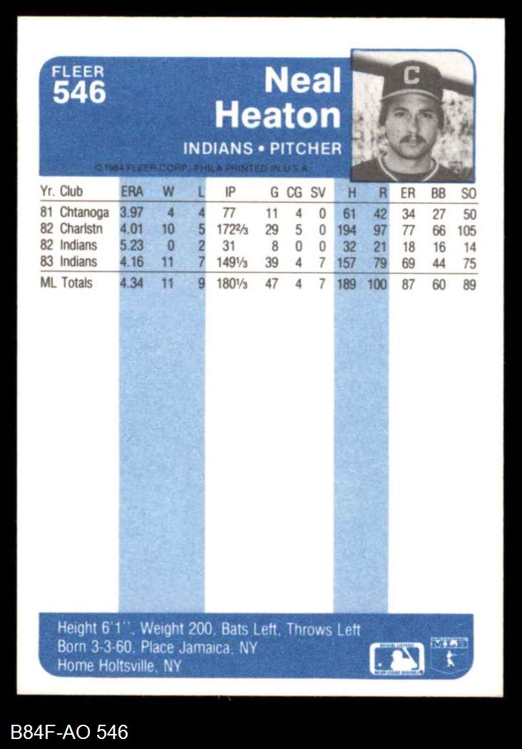 1984 Fleer #546 Neal Heaton 8 - NM/MT