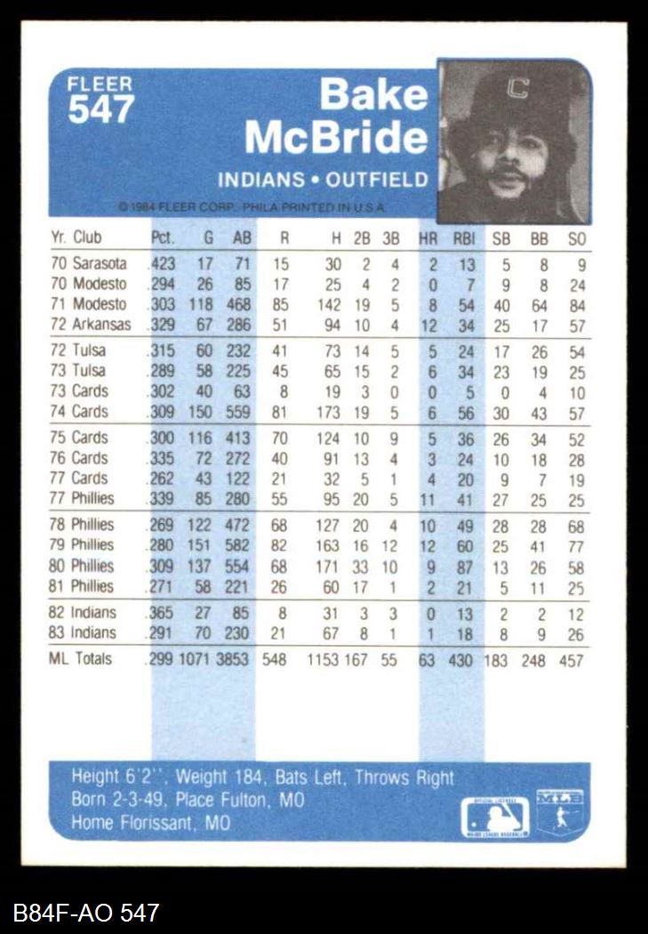 1984 Fleer #547 Bake McBride 8 - NM/MT