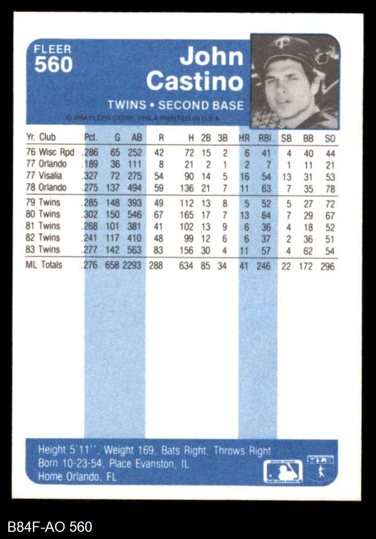 1984 Fleer #560 John Castino 8 - NM/MT