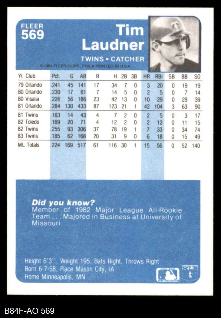 1984 Fleer #569 Tim Laudner