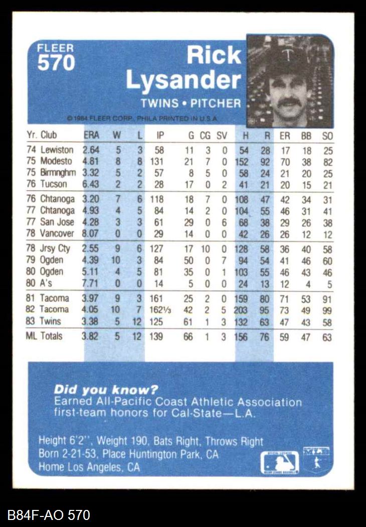 1984 Fleer Baseball Cards (1,894 available)1984 Fleer Twins (82 available)