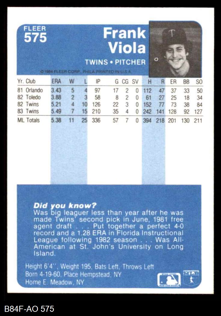 1984 Fleer #575 Frank Viola
