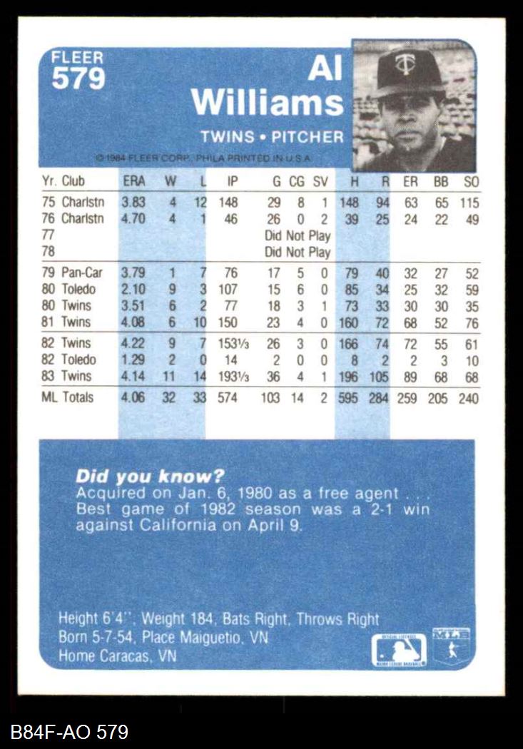 1984 Fleer Baseball Cards (1,882 available)1984 Fleer Twins (82 available)