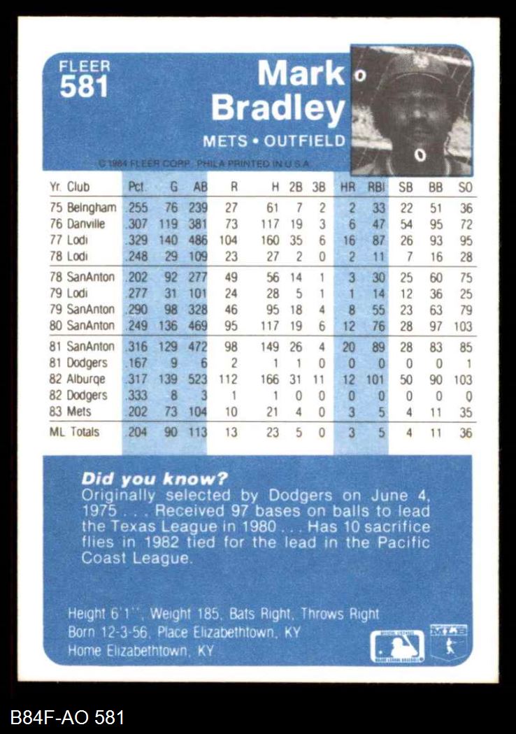 1984 Fleer Baseball Cards (1,882 available)1984 Fleer Mets (68 available)