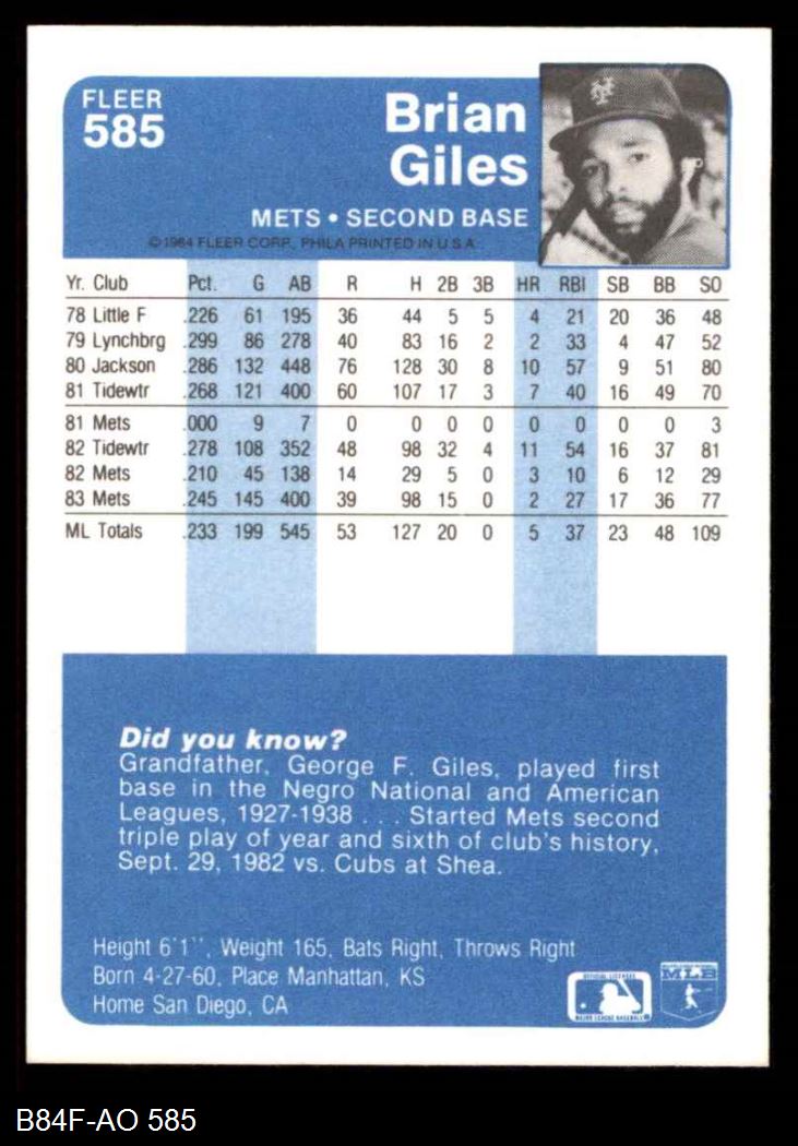1984 Fleer Baseball Cards (1,882 available)1984 Fleer Mets (68 available)