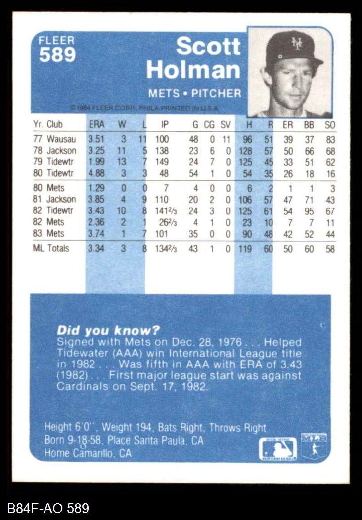 1984 Fleer Baseball Cards (1,882 available)1984 Fleer Mets (68 available)