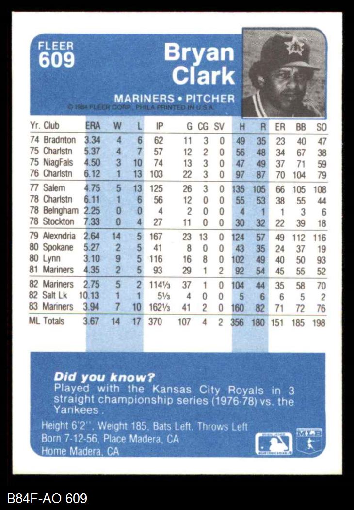 1984 Fleer #609 Bryan Clark