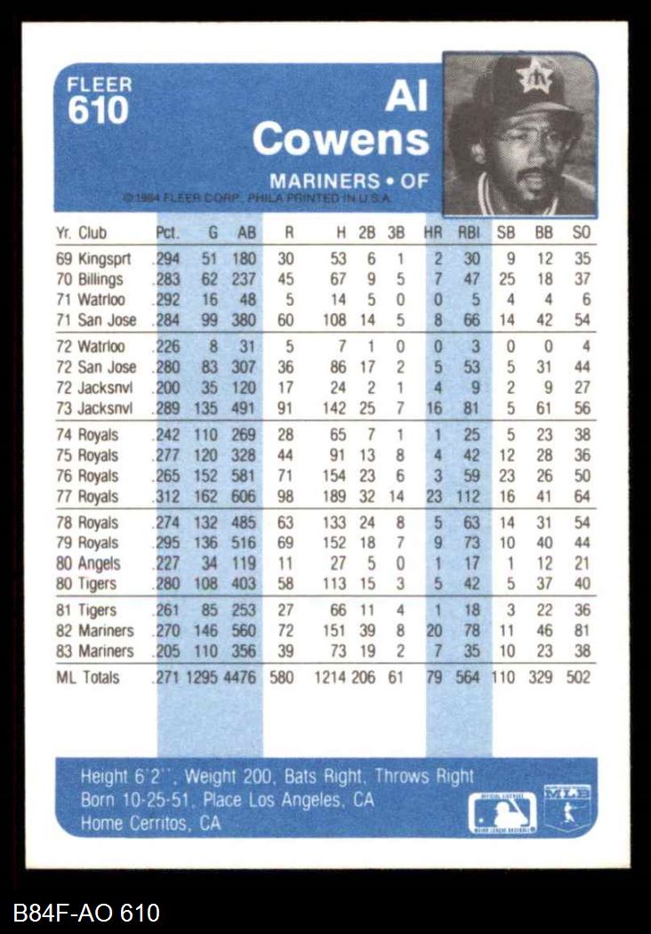 1984 Fleer Baseball Cards (1,882 available)1984 Fleer Mariners (86 available)