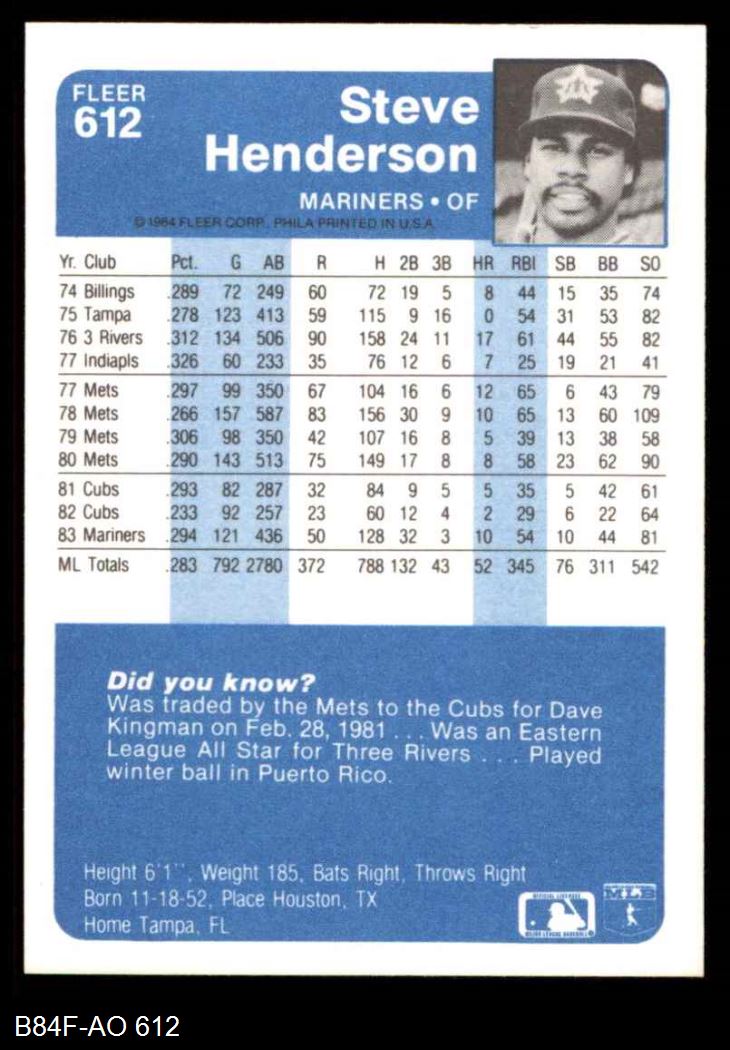 1984 Fleer Baseball Cards (1,882 available)1984 Fleer Mariners (86 available)