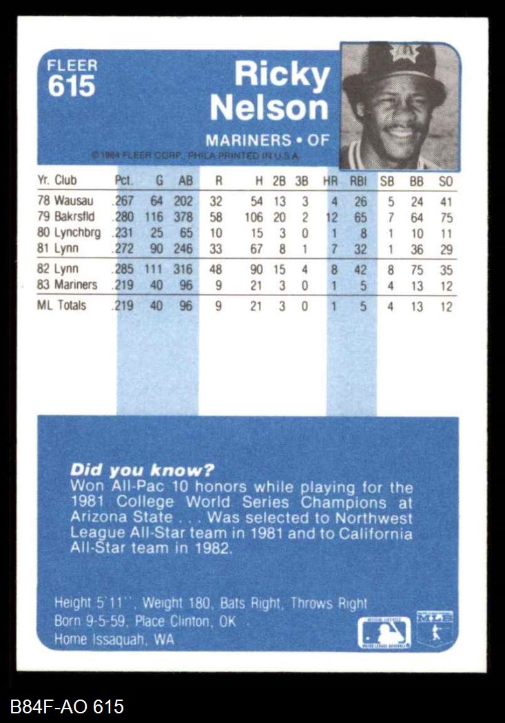 1984 Fleer Baseball Cards (1,885 available)1984 Fleer Mariners (86 available)