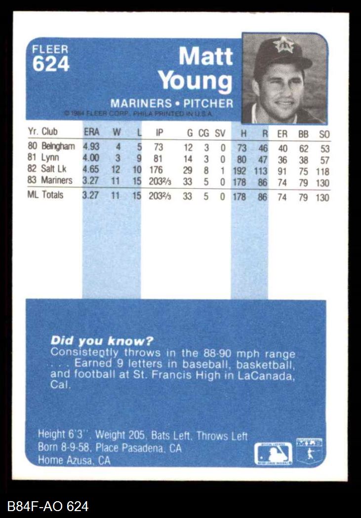 1984 Fleer Baseball Cards (1,885 available)1984 Fleer Mariners (86 available)