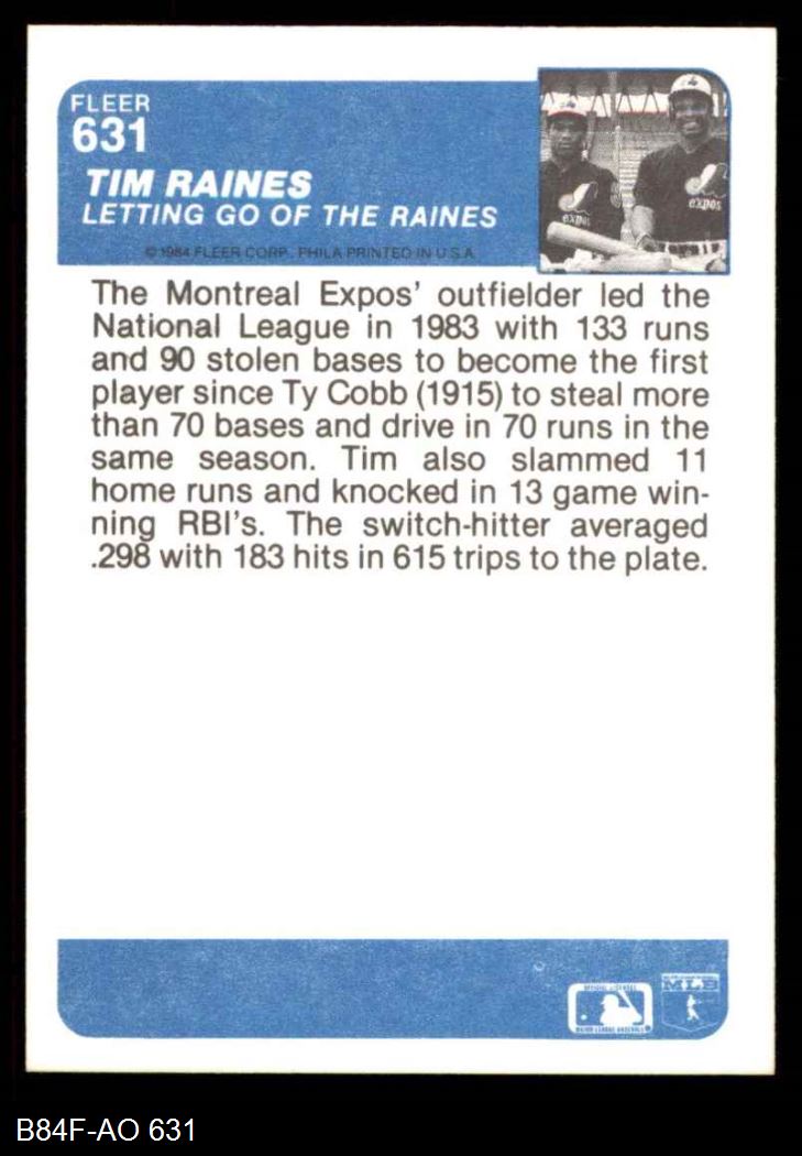 1984 Fleer #631 All cards miscut - Tim Raines Letting Go Of The Raines 8 - NM/MT