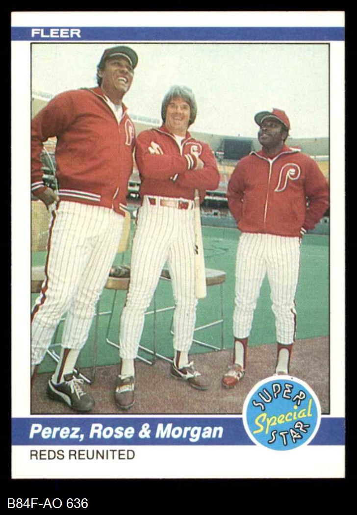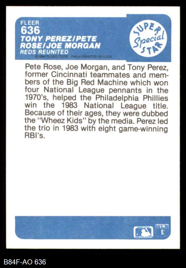 1984 Fleer #636 - Joe Morgan / Pete Rose / Tony Perez Reds Reunited 8 - NM/MT