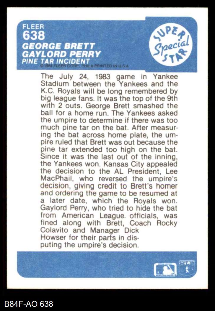 1984 Fleer #638 The Pine Tar Incident 7/24/83