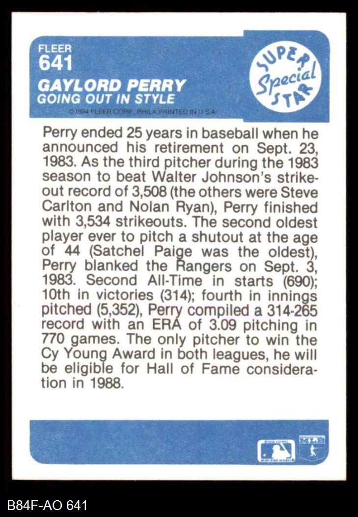 1984 Fleer #641 - Gaylord Perry Going Out In Style 8 - NM/MT