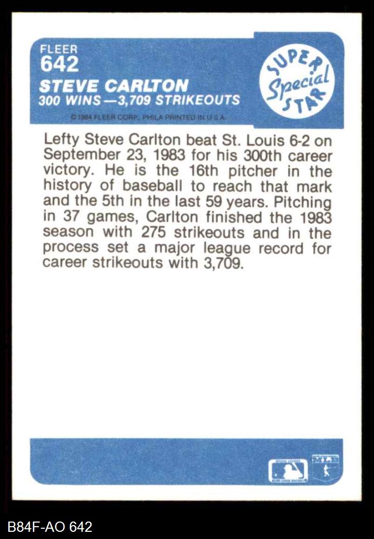 1984 Fleer #642 - Steve Carlton 300 Club & Strikeout Record 8 - NM/MT