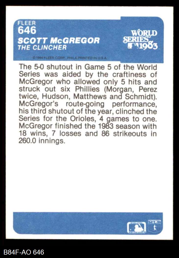 1984 Fleer Baseball Cards (1,894 available)1984 Fleer Orioles (69 available)