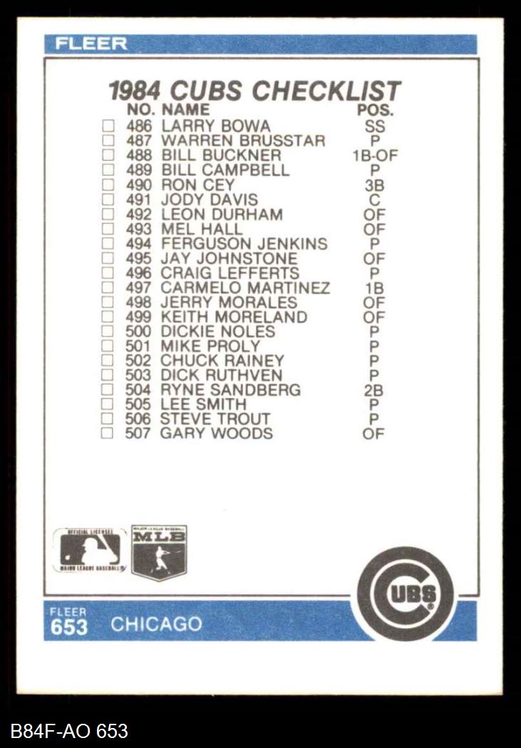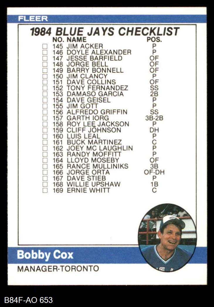 1984 Fleer #653 - Bobby Cox Checklist: Blue Jays/Cubs 8 - NM/MT
