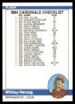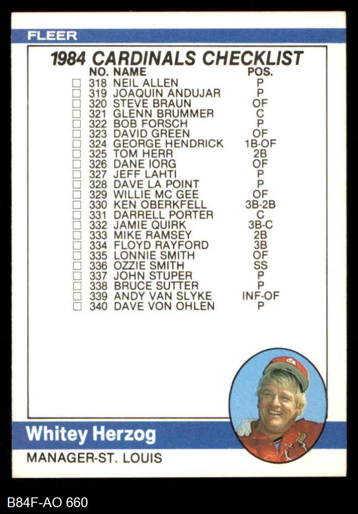 1984 Fleer #660 Checklist: Cardinals/Specials